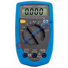 Carregando...Instrumento digital portátil, que se acomoda na palma da mão, categoria de segurança CAT II 300V, mudança de faixa automática, holster protetor e LCD de 3 3/4 dígitos. Realiza medidas de tensão DC e AC, correntes DC e AC, resistência, teste de Hfe, testes de diodo e continuidade.